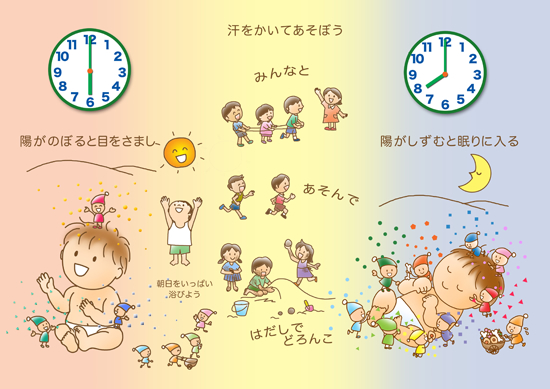 末梢である皮膚が輝く、十分に環境に適応する力を獲得するということは、子どもが健康に育つことそのものです。外界への適応能力がもっとも発達する乳幼児期は土・水とあそぶことで心も体も成長していきます。 皮膚は体のなかで末梢臓器ですが、もっとも大きな臓器でもありますから、大きな臓器に栄養を与えるためには、しっかり食事をとること、土や水とふれて遊ぶこと、子どもの心身を育てることが大切です。