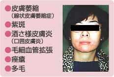 局所副作用としては、ホルモン作用により皮膚を構築する繊維の増殖を抑制しますので、皮膚が薄くなり、特に皮膚の膠原線維の少ない老人では打ち身のときに内出血しやすくなります。ステロイド外用を継続すると膠原線維が減少するので、家の柱を失うように皮膚が薄くなり、血管を取り巻くクッションがへり外からの力に負けやすくなります。 薬の吸収がよい顔面では、毛細血管拡張・にきびなどもよくおこります。 長期間連続して使用したときは、皮膚がステロイド外用剤へ依存することがあり、外用を中止時にリバウンド(皮膚症状の強い悪化)がみられます。 (参照:脱ステロイド療法を受ける「成人型アトピー性皮膚炎」の患者さんへ) 小児は、皮膚が薄く外用剤の浸透が高いために外用薬の効果も高いのですが、同時に副作用も生じやすく、全身に毎日外用すると、皮膚から吸収されて※副腎抑制をおこしたことが古くから報告されています。 (参照:ステロイド嗜癖(しへき)) アメリカのステロイド外用剤添付文書には、小児に対して長期外用の効果と安全性は確認されていないと記載されています。 アトピーは成長とともに自然治癒していきますからステロイド外用剤にできるだけ頼らず、使用するときは炎症の強い部分に局所的に短期間使用すること、連用せずに間歇的に使うことをおすすめします。 ステロイド内服薬は、小児アトピー性皮膚炎の患者さんには原則使用しません。ステロイドを内服した場合免疫を抑制し、種々の副作用を生じることがあるからです。 ※からだがもっている副腎皮膚ホルモン(ステロイド)をつくるはたらきがおさえられてしまうこと。 |