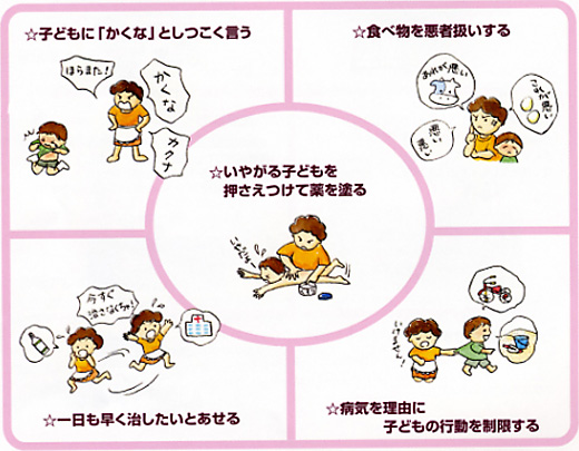 いちばん大切なことは、「かくことをこわがらない」ことです。アトピーはかゆい疾患です。かくのがあたりまえ、と思ってください。かいて傷ができても、やがて「かいても傷のできない皮膚」となり、治っていきます。かゆいときはかくのがいちばんです。